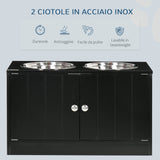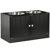 EASYCOMFORT Raised Dog Bowl with Container Compartment, 2 Removable Stainless Steel Bowls, 60x30x35.5cm, Black