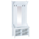 Easycomfort Appendiabiti Attaccapanni da Terra con Specchio Scarpiera 4 Ganci Legno 80x40x170cm Bianco