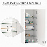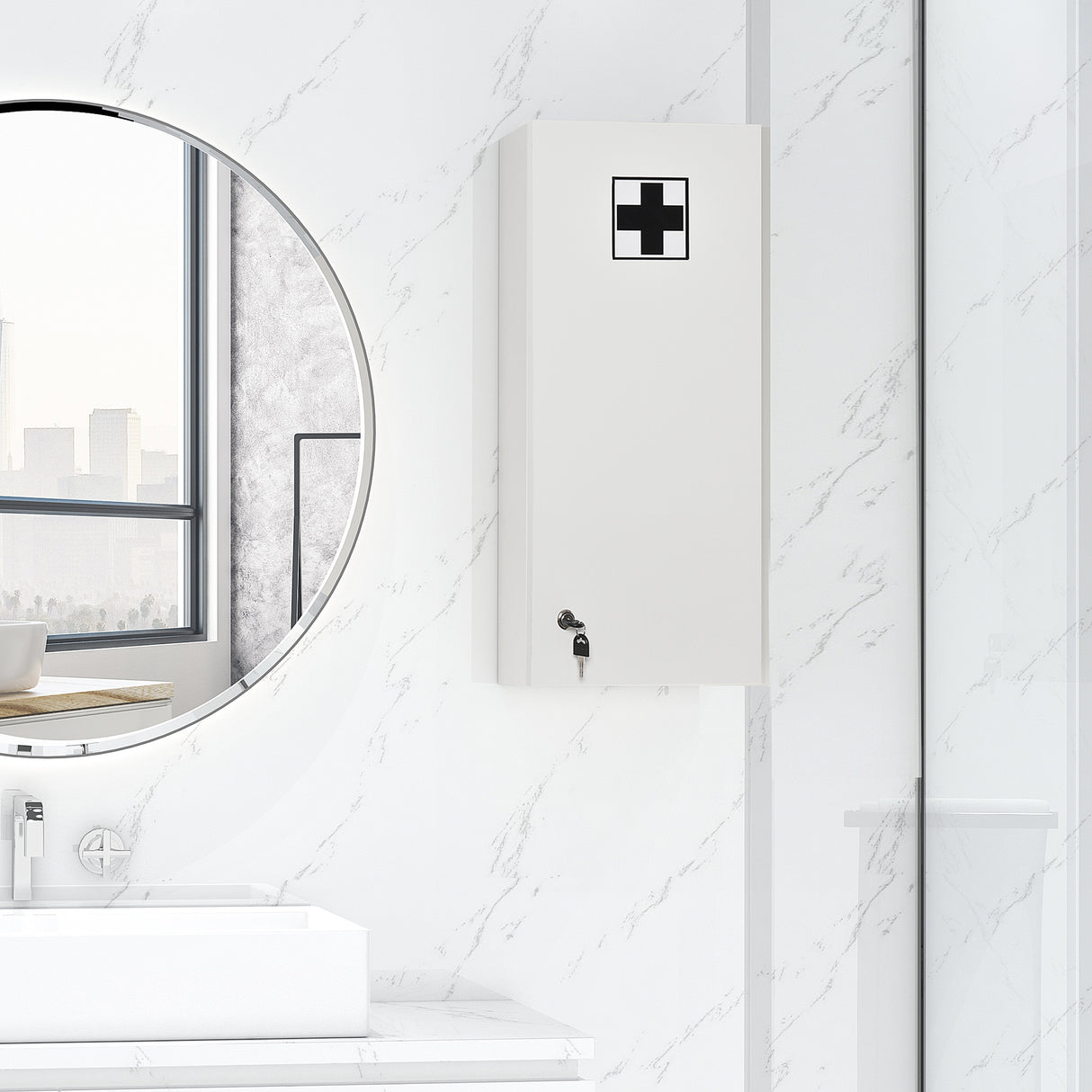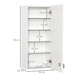 Easycomfort Armadietto Medicinali a Muro con Serratura, 5 Ripiani e Mensole Regolabili, in Legno e Vetro, Bianco, 30x20x70cm