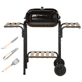 EasyComfort Barbecue a Carbone con Coperchio, Ripiani e Ruote, Completo di Spatola, Pinza e Coltello, Nero