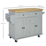 EasyComfort Carrello da Cucina con 2 Cassetti e 2 Armadietti, Piano in Legno, Portaspezie e Porta Canovacci, Grigio