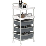EasyComfort Carrello Portaoggetti con 2 Vassoi Fissi e 3 Vassoi Scorrevoli, in Acciaio e PP, 40x34x85 cm, Bianco e Grigio