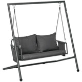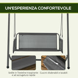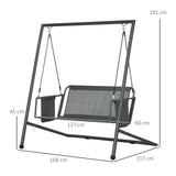 EasyComfort Dondolo da Giardino 2 Posti con Cuscini e Tasche, in Acciaio e Textilene, 168x117x181 cm, Grigio Scuro