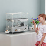 EasyComfort Gabbia per Criceti a 2 Livelli e 3 Porte con Ruota e Tubi, in Acciaio, PS e PP, 44.5x28x44 cm, Grigio e Bianco