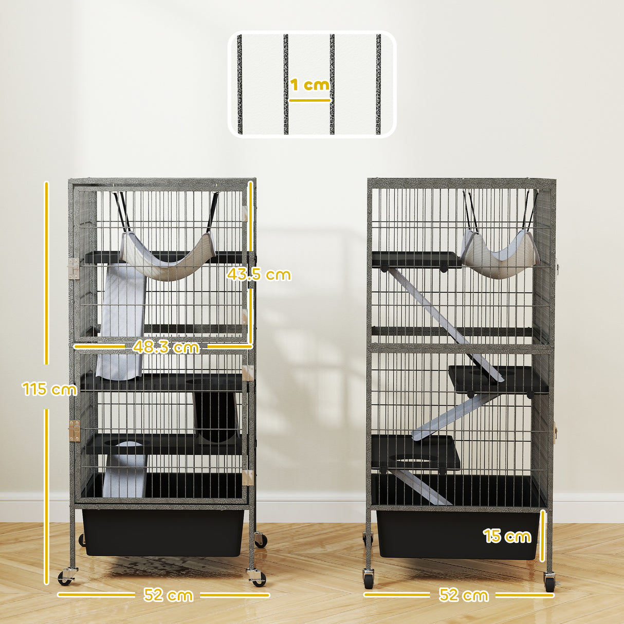 EasyComfort Gabbia per Piccoli Animali a 4 Livelli con Rampe, Piattaforme, Amaca e Ruote, 52x52x115 cm, Grigio