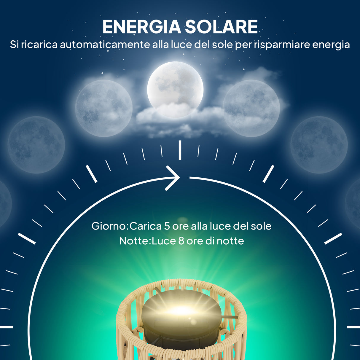 • Il pannello solare della lampada da esterno si carica alla luce del sole, 5 ore di carica completa equivalgono a 8 ore di luce