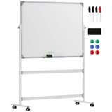 EasyComfort Lavagna Magnetica Bianca a 2 Facce con Accessori e 4 Ruote, in Alluminio e Acciaio, 127x50x165 cm
