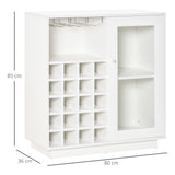 EasyComfort Mobiletto Portabottiglie Vini con Porta Calici e Armadietto, Capacità 20 Bottiglie, 80x36x85 cm, Bianco