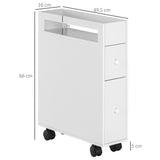 Easycomfort Mobiletto Salvaspazio Bagno con 4 Ruote, 2 Cassetti e Ripiano aperto, 16x49.5x66cm, Bianco