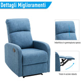 Easycomfort Poltrona Relax Reclinabile Manuale con Poggiapiedi Portata 125kg Tessuto di Lino 67 × 83 × 107cm Blu