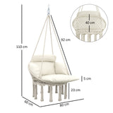 EasyComfort Poltrona Sospesa in Stile Boho con Cuscino, in Acciaio, Cotone e Poliestere, 80x60x40 cm, Bianco Crema