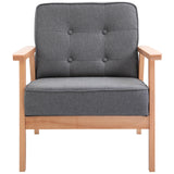 Easycomfort Poltrona Stile Scandinavo Imbottita e Trapuntata a Bottoni in Tessuto e Legno, 64.5x70x74cm, Grigio
