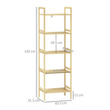 EasyComfort Scaffale Bagno a 5 Ripiani Regolabili in Altezza in Bambù, 43.5x31.5x142 cm, Legno Naturale