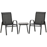 Easycomfort Set da Giardino 3 Pezzi con Tavolino e 2 Sedie Impilabili, in Acciaio e Tessuto Traforato, Nero