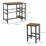 Easycomfort Set Tavolo 2 Sgabelli Alti da Bar in Legno Isola Cucina con Portabottiglie e Portabicchieri in Stile Industriale