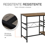 Tavolo con portabottiglie, portabicchieri e ripiano inferiore;