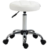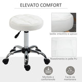 EasyComfort Sgabello Girevole Rotondo con Ruote, Altezza Regolabile e Rivestimento in Finta Pelle, Bianco