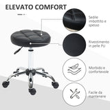 EasyComfort Sgabello Girevole Rotondo con Ruote, Altezza Regolabile e Rivestimento in Finta Pelle, Nero