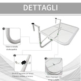 Easycomfort Tavolo da Ringhiera con Ganci ad Altezza Regolabile su 3 Livelli, in Metallo, 60x56.5x45 cm, Bianco