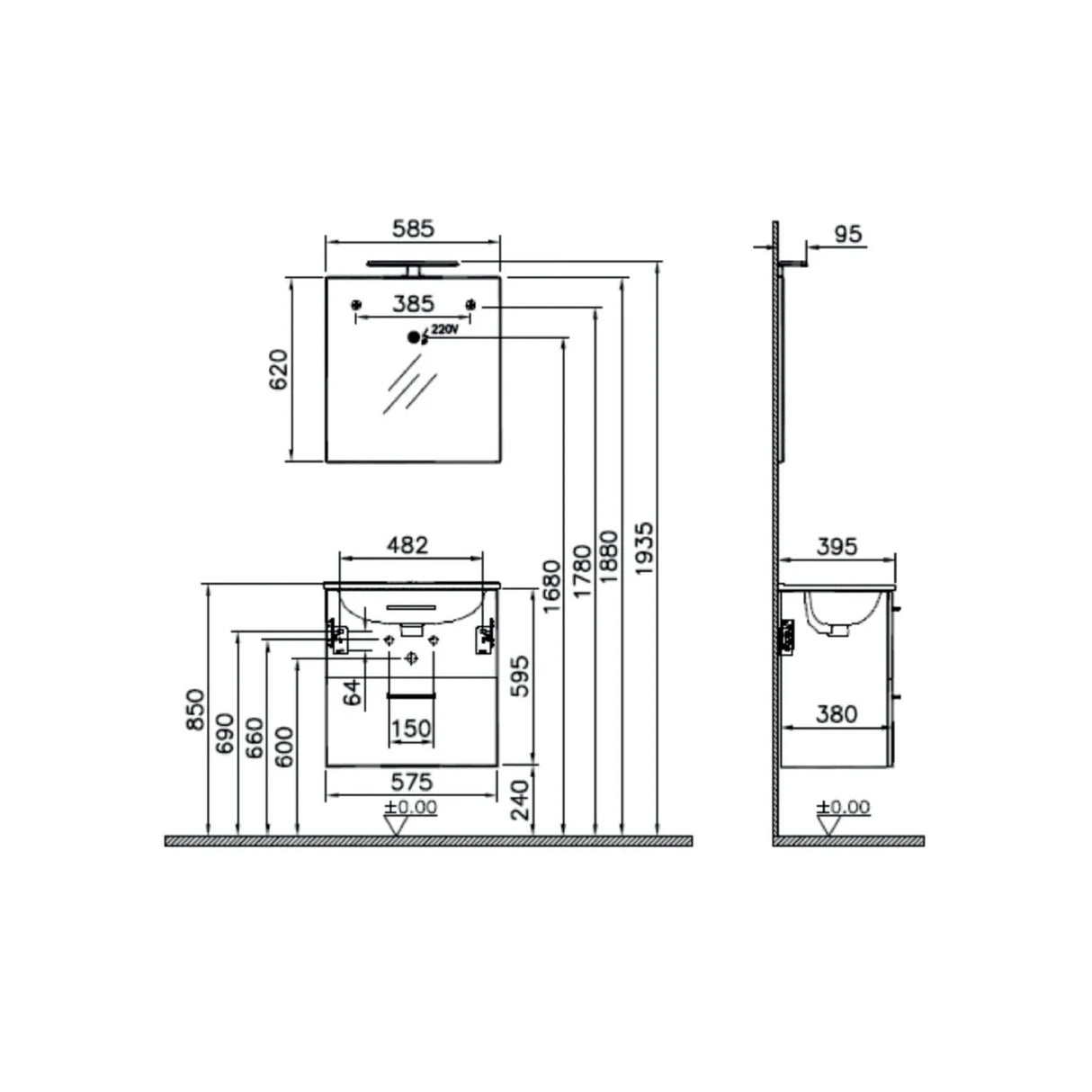 Mobile Bagno sospeso Vitra con Lavabo colore Bianco Lucido 60 cm