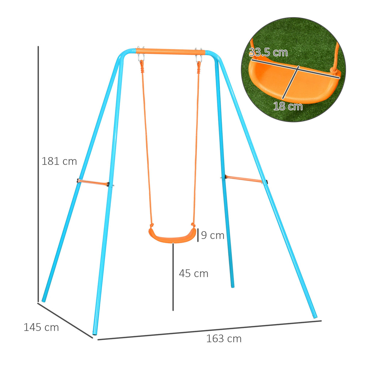 Easycomfort Altalena per Bambini 3-8 Anni da Giardino in Acciaio e PE con Seggiolino e Picchetti, 163x145x181 cm