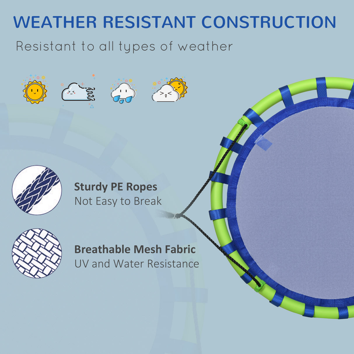Easycomfort Altalena per Bambini da 3-8 Anni da Giardino Ø100cm e Corde Regolabili, Blu