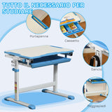 Easycomfort Banco Scuola per Bambini 6-12 Anni con Sedia Regolabile, Cassetto e Piano Inclinabile, 66x47x52-77 cm, Blu