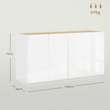 EasyComfort Credenza Moderna con Armadietti a 2 Ante, Chiusura Ammortizzata e Ripiani Regolabili, 140x40x75cm, Bianco Lucido