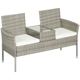 EasyComfort Divanetto per Esterni 2 Posti con Tavolino da Caffè, in Acciaio e Rattan PE, 137x59x82 cm, Grigio e Crema