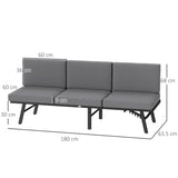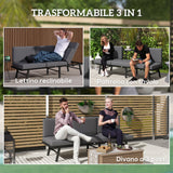 EasyComfort Divano da Giardino 3 in 1 Reclinabile su 5 Posizioni con Cuscini, 180x63.5x68 cm, Grigio