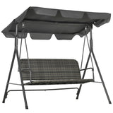 EasyComfort Dondolo da Giardino 3 Posti con Tettuccio Regolabile in Rattan PE, 167x112x153cm, Grigio Scuro