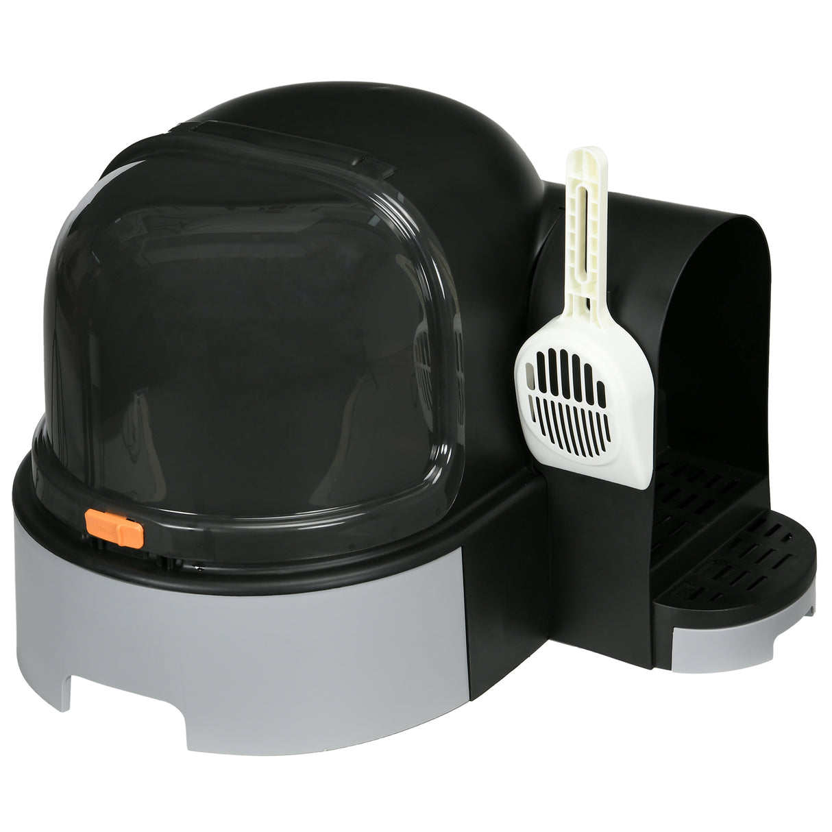 EasyComfort Lettiera per Gatti Chiusa con Coperchio, Vassoio Estraibile e Paletta, in PP e PC, 52x60x42 cm, Grigio Scuro