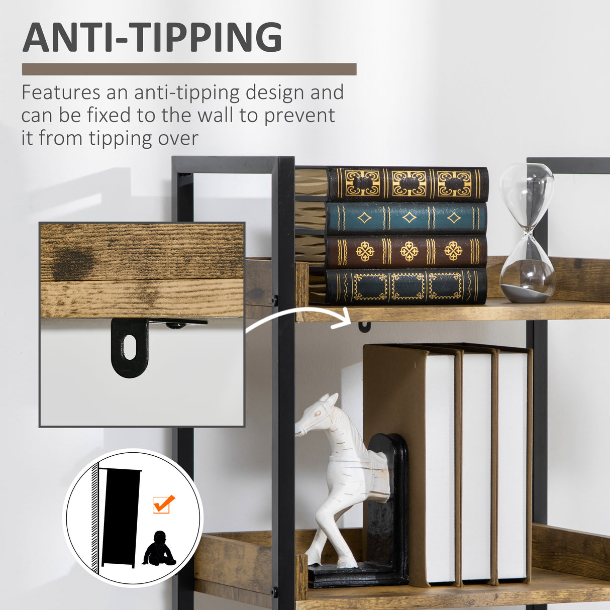 Easycomfort Libreria Stile Industriale a 5 Ripiani in Legno e Metallo, 48x30x155cm, Marrone Rustico