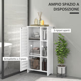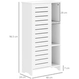 EasyComfort Mobile Bagno con Armadietto Chiuso a 3 Livelli e 3 Ripiani Aperti, in Legno Bianco, 48x24x96.5 cm