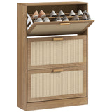 EasyComfort Mobile Scarpiera per 18 Paia di Scarpe con 3 Cassetti Ribaltabili in Legno e Rattan, 80x25x120 cm, Marrone