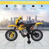 Easycomfort Moto Cross Elettrica con Rotelle Giallo per Bambini 3 anni e più, Batteria 6V Velocità 2.5km/h, 102 x 53 x 66cm
