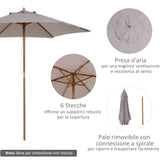 EasyComfort Ombrellone da Giardino a 6 Stecche in Legno e Tessuto Poliestere, 2.5x2.3m, Grigio