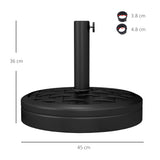 EasyComfort Outusnny Base per Ombrellone da 18 kg con Manovella Girevole, in Acciaio, HDPE e Cemento, Ø45x36 cm, Nero