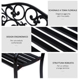 EasyComfort Panchina da Giardino 2 Posti con Schienale Decorato in Ghisa e Metallo, 127x60x89cm, Nero