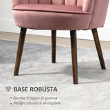 Easycomfort Poltrona Imbottita con Schienale a Conchiglia e Gambe in Legno, Poltrona in Velluto per Salotto e Camera, 66x66x78.5cm, Rosa