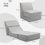 EasyComfort Poltrona Moderna da Pavimento Convertibile in Chaise Longue in Tessuto, Grigio Chiaro