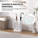 EasyComfort Portaombrelli di Design con Vaschetta Raccogli Gocce e 4 Ganci in Metallo, 28x14x41 cm, Bianco