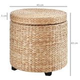 EasyComfort Pouf Contenitore Rotondo Stile Boho con Rivestimento Naturale, Tavolino da Salotto Ø43x43cm, Kaki