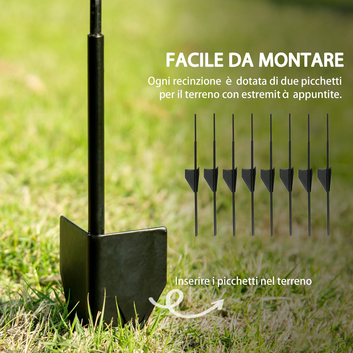EasyComfort Recinzione Esterna a 4 Pannelli i Acciaio Nero con 8 Picchetti da Terra, 348x110 cm