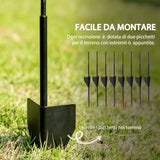 • Si consiglia di inserire i picchetti nel terreno o nell'erba per facilitare il montaggio della recinzione esterna e garantirne la stabilità