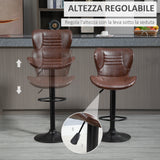 EasyComfort Set 2 Sgabelli da Bar in Finta Pelle con Altezza Regolabile, Seduta Girevole e Poggiapiedi, Marrone