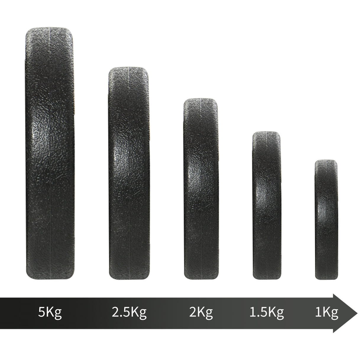 - Dimensioni dei dischi: ?24.5 x 4.3cm (5kg), ?17 x 3.3cm (1.5kg)