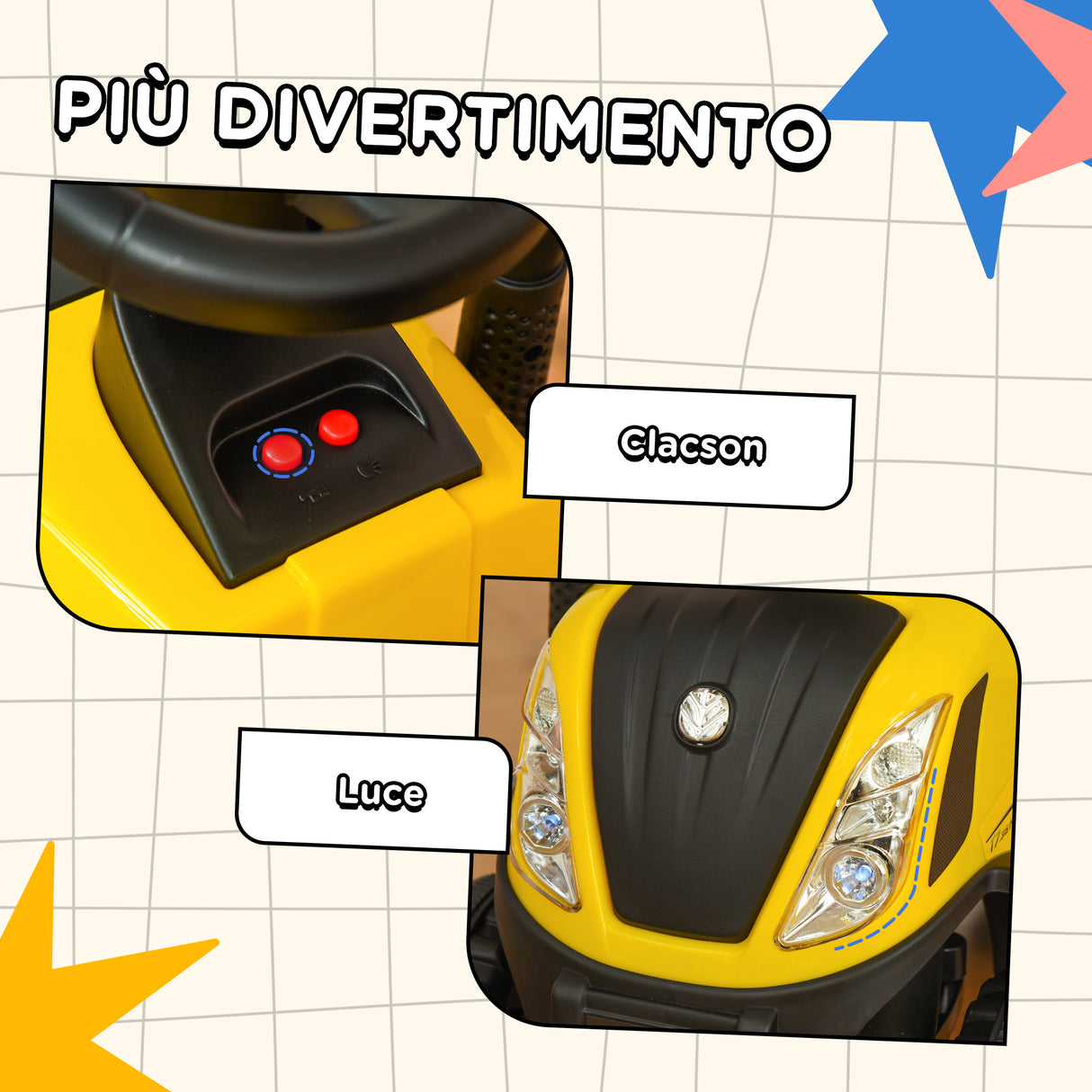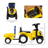 Easycomfort Trattore Giocattolo per Bambini Cavalcabile con Rimorchio, Rastrello e Pala, Gioco Educativo per Bimbi 12-36 Mesi, 91x29x44cm, Giallo