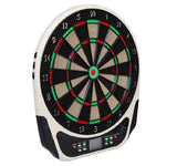 - Possibile Torneo da 1 fino 8 partecipanti! -Schermo a LED visualizza automaticamente i punteggi di ogni giocatore suonando-Effetto: i risultati sono annunciati da una voce elettronica -8 livelli di volume regolabile -18 giochi internazionali e 159 varianti di gioco totali -Zone sul bersaglio per freccette -Facile da spostare e adatto anche in piccoli spazi Spedito con un adattatore selettore -Può essere utilizzato con 3 pile a scelta -Compatibile con gli standard UE -Utilizzo facile ed intuitivo Specifiche: Colore: bianco -Dimensioni: 44 x 50 x 3,2 cm (L x W x spessore)