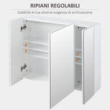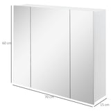 Easycomfort Armadietto Bagno con 3 Ante Specchiate e Ripiani Regolabili, 70x15x60cm, Bianco